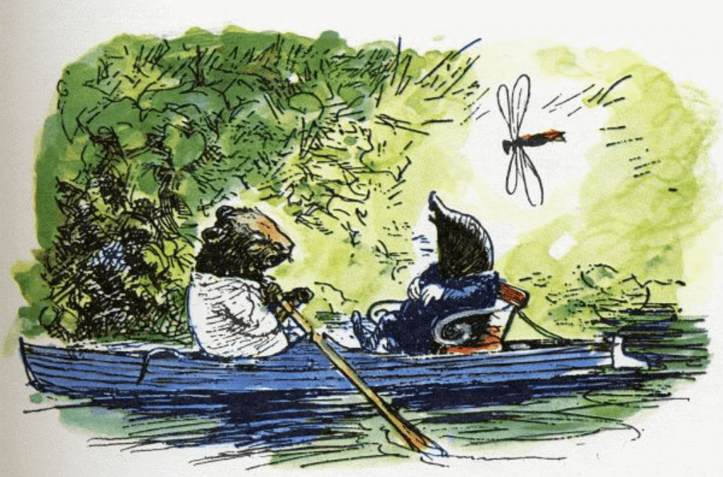 “Hither and thither through the meadows he rambled busily, along the hedgerows, across the copses, finding everywhere birds building, flowers budding, leaves thrusting—everything happy, and progressive, and occupied. And instead of having an uneasy conscience pricking him and whispering ‘whitewash!’ he somehow could only feel how jolly it was to be the only idle dog among all these busy citizens.”